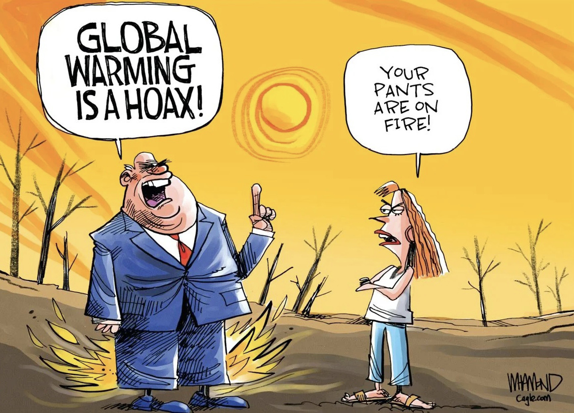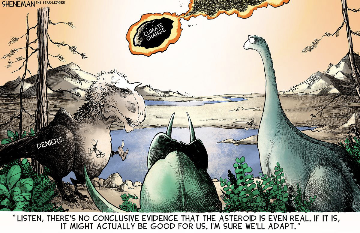 Viñeta de Drew Sheneman sobre negacionismo y cambio climático, publicada el 11 de enero de 2024
