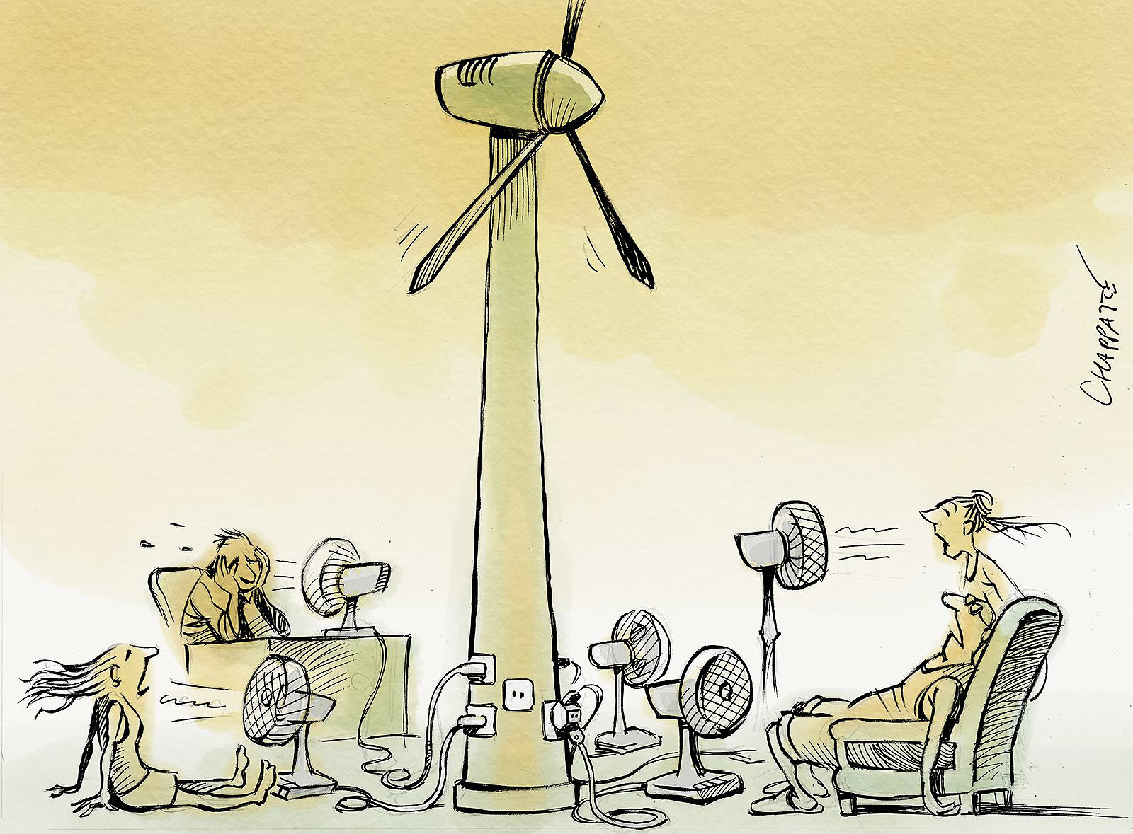 La colección de viñetas sobre el cambio climático analizada incluye representaciones visuales directas y sin subtexto que retratan la crisis climática sin interpretaciones adicionales (n=4). Ejemplos de esta estrategia incluyen obras como las de Christopher Weyant en The Boston Globe (23 de febrero de 2023) y Jeff Koterba en West Central Tribune (17 de enero de 2024), ambas con el polo como icono central. En esta misma línea, Patrick Chapatte, en su viñeta This year a quit smoking en Le Canard Enchainé (1 de enero de 2022), prescinde de un subtexto elaborado y, en cambio, plantea la situación de manera simple y directa. Mientras, editorial cartoons como los de Patrick Chapatte en NZZ am Sonntag (25 de junio y 10 de septiembre de 2017) hacen gala de una incongruencia visual (Figura 5) y emplean elementos inesperados, como un ventilador en medio de una situación climática extrema, para añadir un toque de ironía sutil.