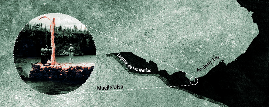 Figura 2. Muelle Ulva en Academy Bay. Foto del muelle cortesía de Washington Ramos, s/f. Fuente: Elaboración propia.