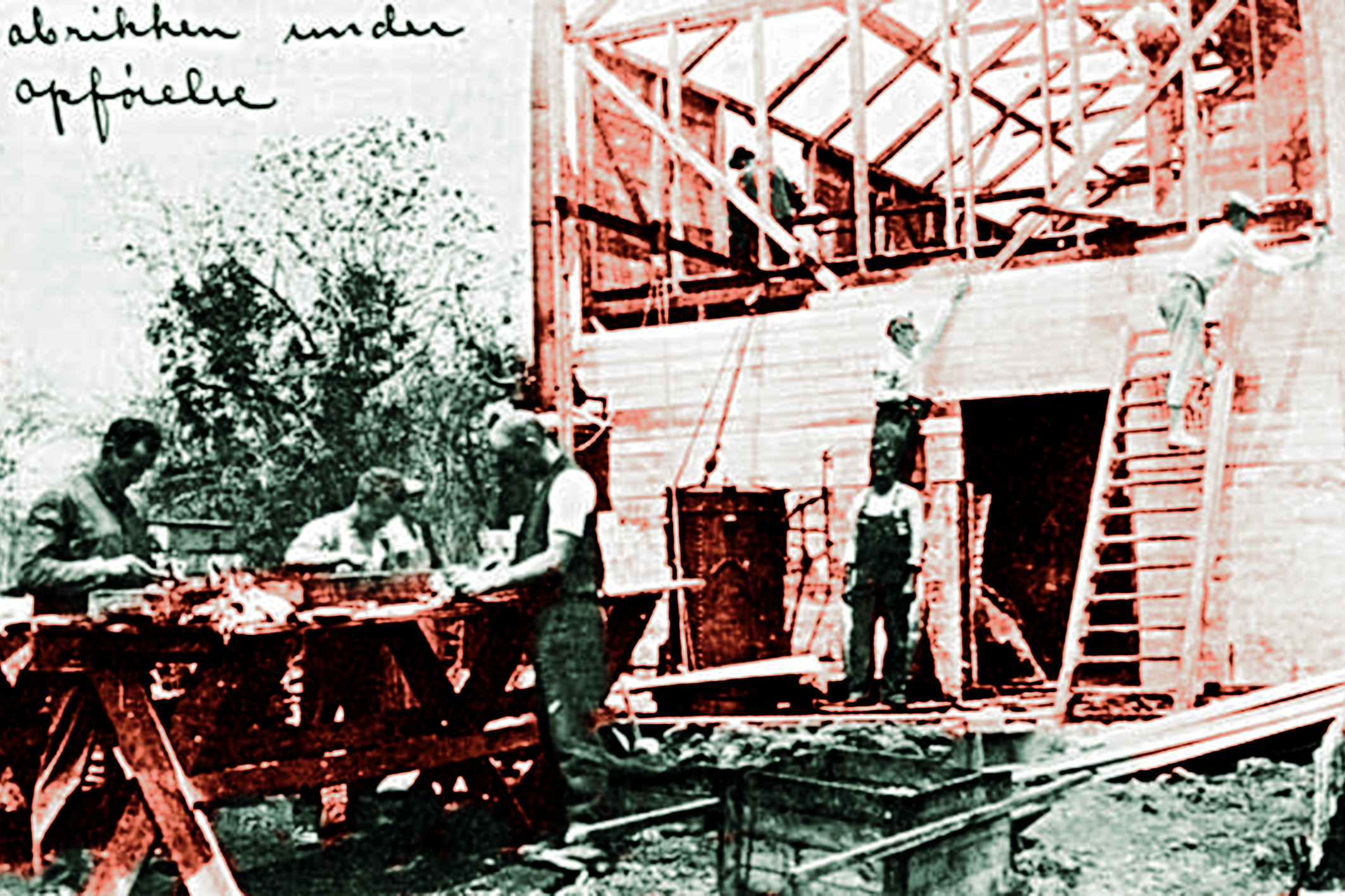 Figura 1. El horno de pan fue construido el mismo día del arribo. Foto cortesía de Thelma Lea, 1926. Fuente: Woram, 2021.