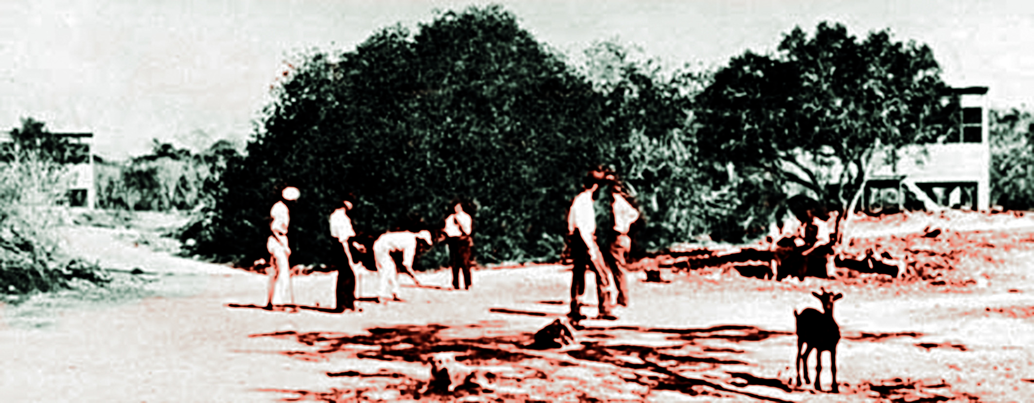 El 7 de agosto de 1926 desembarcó el primer asentamiento permanente de la isla Santa Cruz en el Archipiélago de Galápagos, Ecuador (Latorre, 1999). La Sociedad Anónima de Santa Cruz viajó desde el puerto de Larvik en Noruega a bordo del Ulva. Su tripulación estaba compuesta por cuarenta y tres hombres accionista y dos mujeres: Marie Dahl, esposa de uno de ellos, y Borghild Rorud, profesora en formación. Al desembarcar, buscaron el fondeadero más seguro para asentarse. Andar por la orilla fue la primera acción simbólica y práctica arquitectónica que posibilitó el habitar (Careri, 2014) tras varios meses de navegación. El agua condicionó su decisión y eligieron el extremo suroeste de Academy Bay, una bahía que se caracteriza por una serie de estrechos que se adentran en la isla y un gran acantilado volcánico que delimitaba su geografía. Intuyeron que el canal más cercano al mar podría convertirse en un espléndido puerto para pequeñas embarcaciones, mientras que la Laguna de las Ninfas permitiría acorralar bancos enteros de peces. Para celebrar el arribo, la colonia construyó un horno de pan, confirmando que “la hoguera es el germen, el embrión de todas las instituciones sociales” (Semper, citado en Toca, 2004, p. 67) (fig. 1).