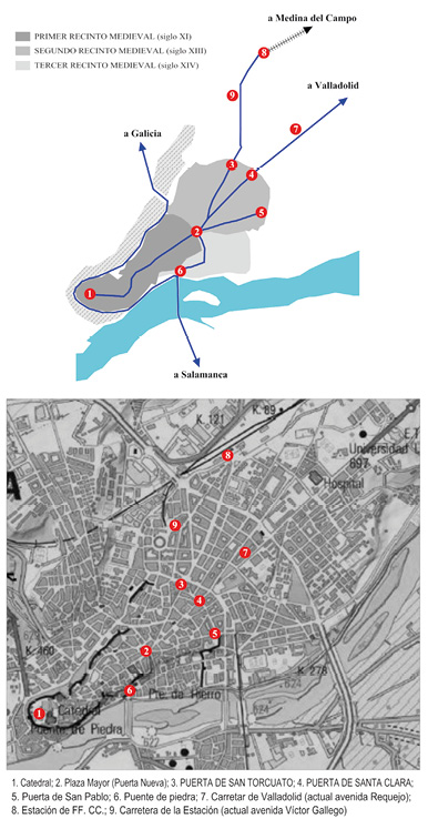 También en el caso de Zamora, la necesidad de expandir el casco tradicional, unido al deseo de modernidad emanado de la nueva clase burguesa surgida de la explotación harinera e hidroeléctrica que se desarrolló en la región, precipitó la desaparición de algunas partes de la cerca medieval a partir de 1868, cuando la ciudad perdió su condición de Plaza Fuerte y, con ello, la función defensiva que habían ostentado durante la Edad Moderna3.