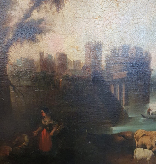 Figura 4. Andrés Cortés Aguilar, detalle de Paisaje romántico, segunda mitad del siglo XIX, colección privada.