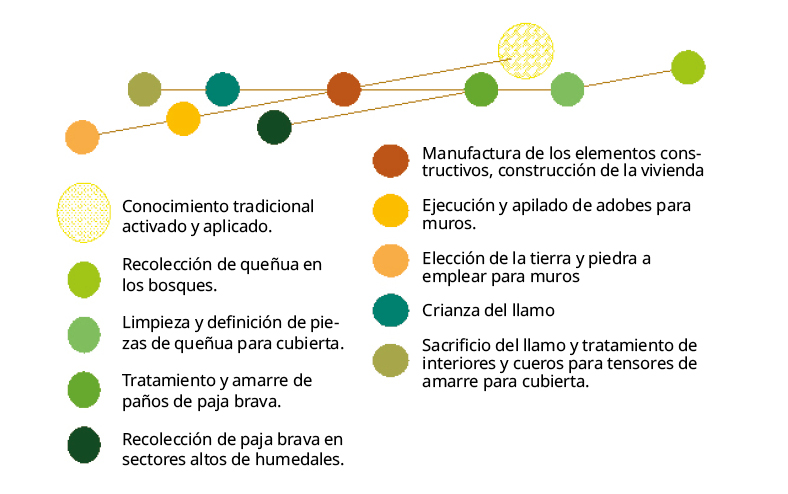 Este encadenamiento general, deja establecido el soporte para conformar el ciclo de producción que sostiene a este conocimiento, que permite la gestión implícita del saber tradicional como patrimonio, ya que para “hacer” hay que “saber hacer”.