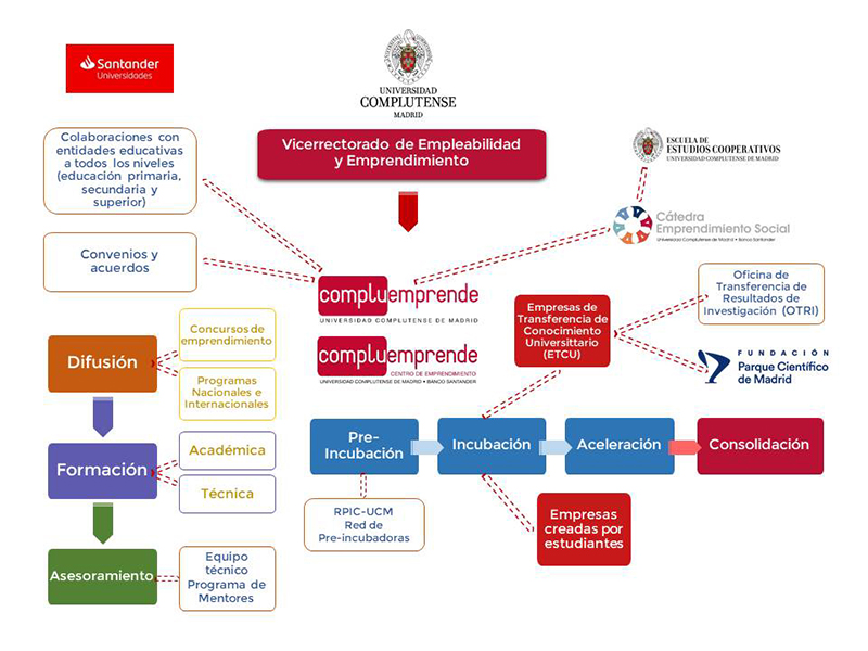 Figura 2. Ecosistema emprendedor de la Universidad Complutense de Madrid. Fuente: CompluEmprende https://www.ucm.es/compluemprende/ecosistema-ucm-1