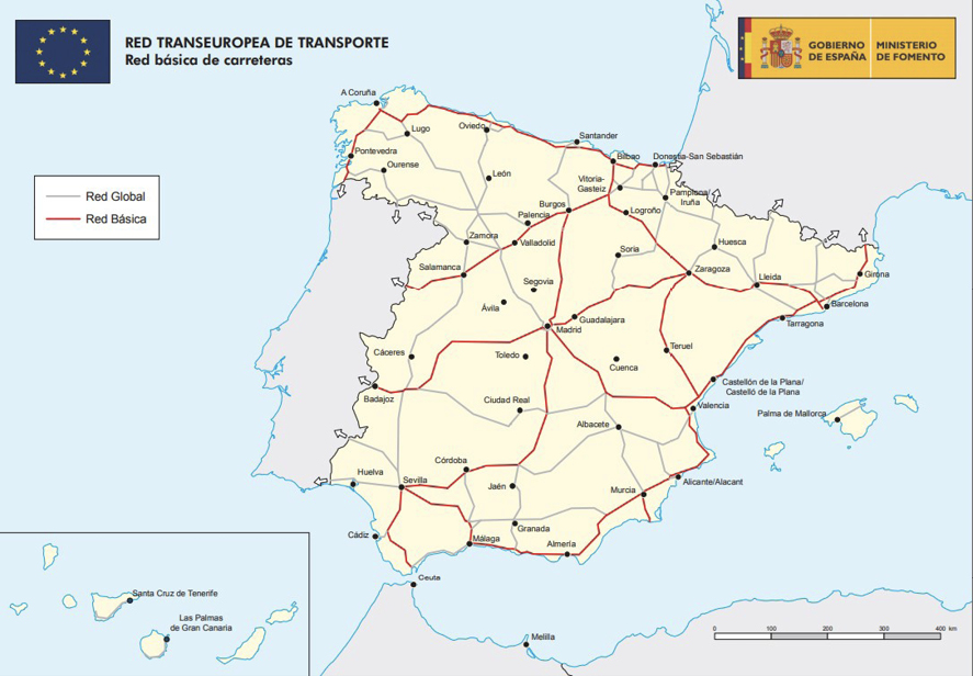 Figura 3f. Red transeuropea de transportes. Red básica de carreteras. Fuente: Ministerio de Transportes, Movilidad y Agenda Urbana del Gobierno de España (2022).