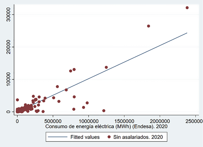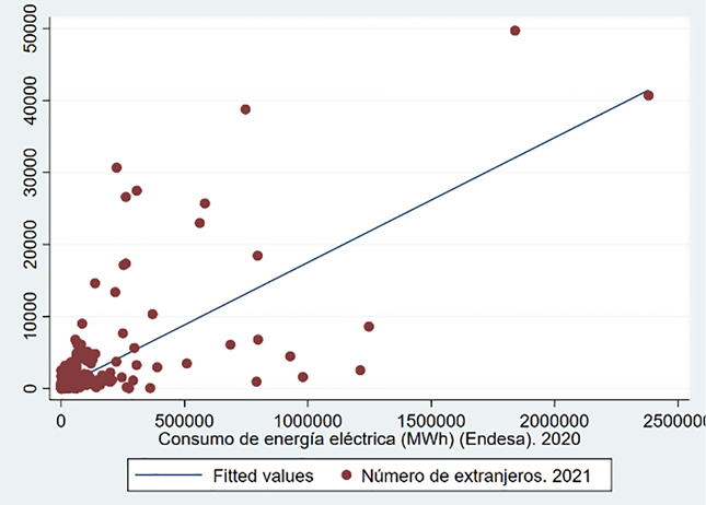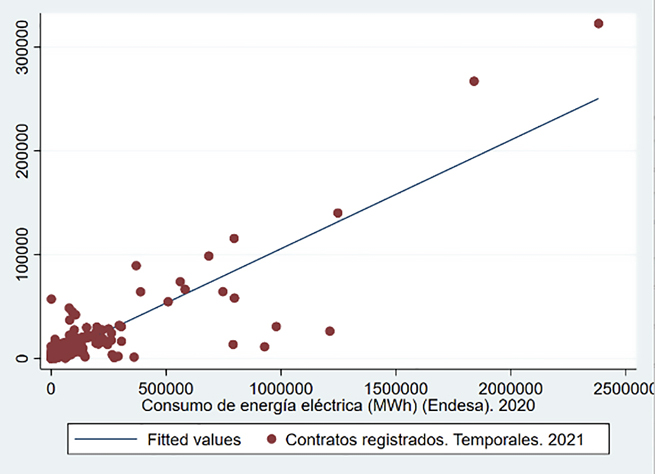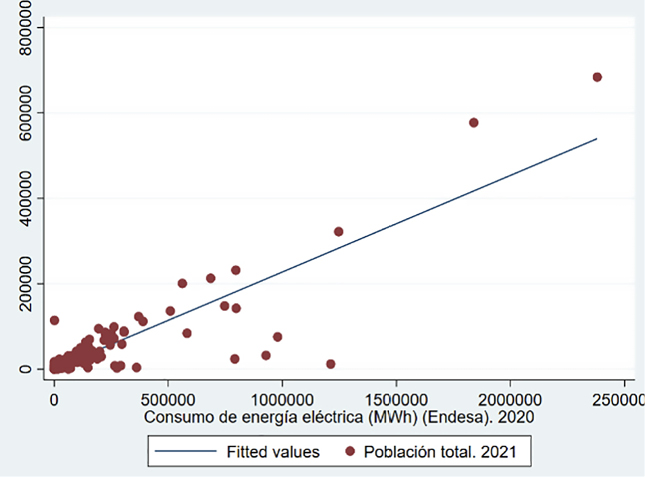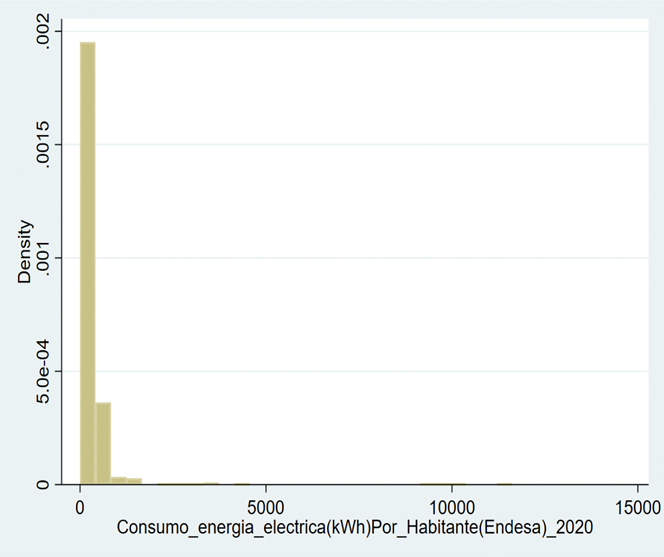 El objetivo del presente artículo es la realización de un estudio del consumo de energía eléctrica en todos los municipios de la Comunidad Autónoma de Andalucía que tienen a Endesa Distribución Eléctrica como suministradora durante el año 2020. Para ello, se ha hecho uso del programa Stata y la base de datos de la plataforma del Sistema de Información Multiterritorial de Andalucía (SIMA). Los resultados obtenidos permiten concluir que en Andalucía existen diferencias estadísticamente significativas con respecto al consumo tanto a nivel municipal como provincial. Esto da lugar a la presencia de datos atípicos y que la variable objeto de estudio no se ajuste a una distribución normal. También se ha concluido que existe una correlación fuerte con otras cinco variables de la plataforma SIMA. |