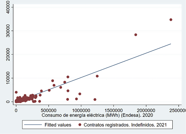 En este artículo se pretende analizar a través de un estudio estadístico el consumo de energía eléctrica en todos los municipios de Andalucía que tienen a Endesa Distribución Eléctrica como suministradora durante el año 2020, que es el último año del cual tenemos registro de datos. Para ello, se hará uso del software Stata y de una base de datos recogida en la plataforma del Sistema de Información Multiterritorial de Andalucía (SIMA) de la web del Instituto de Estadística y Cartografía de dicha comunidad. El programa Stata es un gran software estadístico cuya primera versión es del año 1985. Nació como un lenguaje de programación para la realización de análisis estadísticos y ha ido evolucionando con el paso de los años. Permite a los usuarios analizar, administrar y generar visualizaciones gráficas de los datos. Stata, como el resto de software estadísticos, combina la operativa de dos tipologías de software: la base de datos y la hoja de cálculo, adaptándolas para la realización operaciones estadísticas (Universidad Loyola, 2021). El Instituto de Estadística y Cartografía de Andalucía tiene entre sus objetivos la promoción y coordinación de la estadística y cartografía en Andalucía. Está formado por varios organismos como la Comisión Andaluza de Estadística y Cartografía y la Comisión Técnica de Estadística (Álvaro et al., 2013).