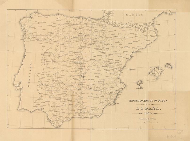 Figura 2. Mapa de España. Triangulación geodésica, escala 1:2.000.000 (IGN, 1870).