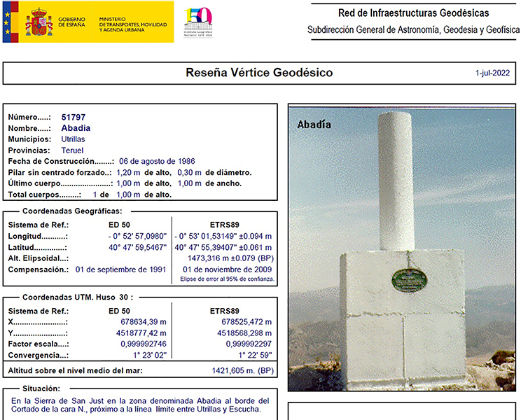 Sin embargo, seguramente, los datos más interesantes están relacionados con sus coordenadas, que pueden verse en un mapa, que muestra un punto rojo por cada uno de los vértices geodésicos (https://w.wiki/6Dg8). Estos mismos datos pueden consultarse también con la siguiente sentencia en SPARQL: