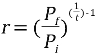 Utilizando la formula anterior, se despeja en función del resultado para obtener la tasa de crecimiento anual entre los muestreos censales, obteniendo la ecuación 1.3. Tasa de crecimiento anual intercensal.