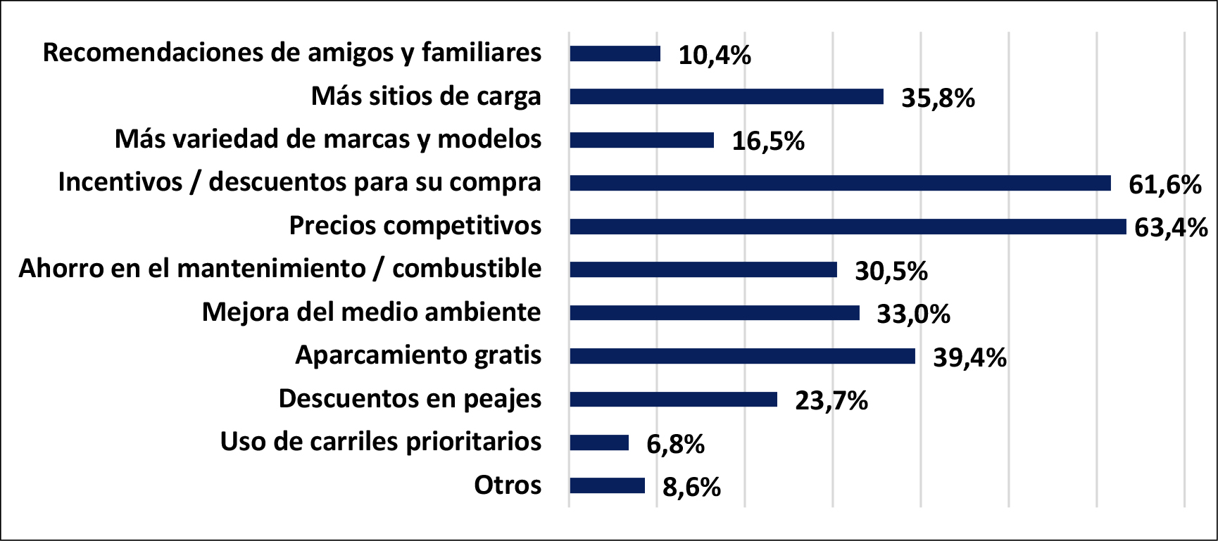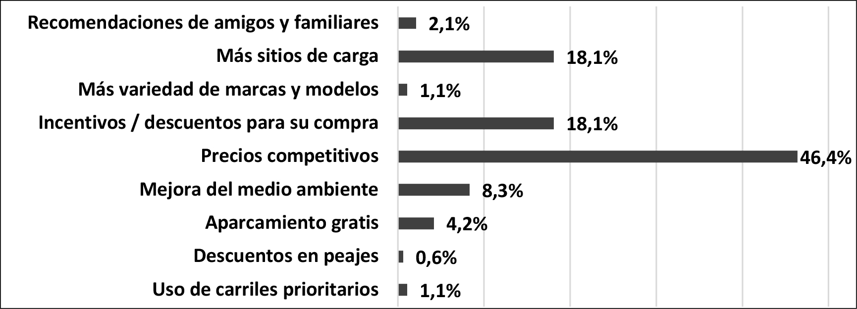 ¿Cuáles sería el factor clave para que adquiriese un vehículo eléctrico? (respuesta única) |