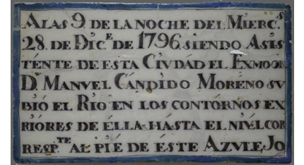 Tradicionalmente en Sevilla que se colocaron placas cerámicas como testigo permanente de la altura alcanzada en distintas inundaciones y como indicador histórico de la gravedad de cada suceso (figura 2).