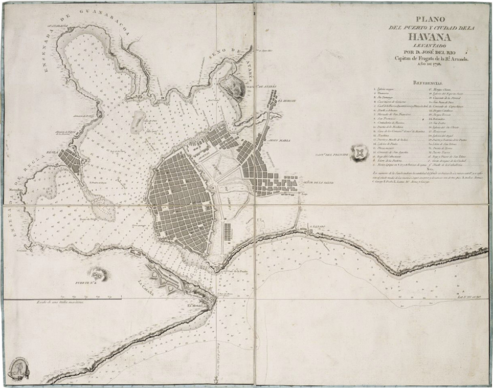 Armada, J. D. (1798). Nautical Chart and City Map of Havana, Cuba. Recuperado de Geographicus: https://www.geographicus.com/P/AntiqueMap/Havana-delrio-1798