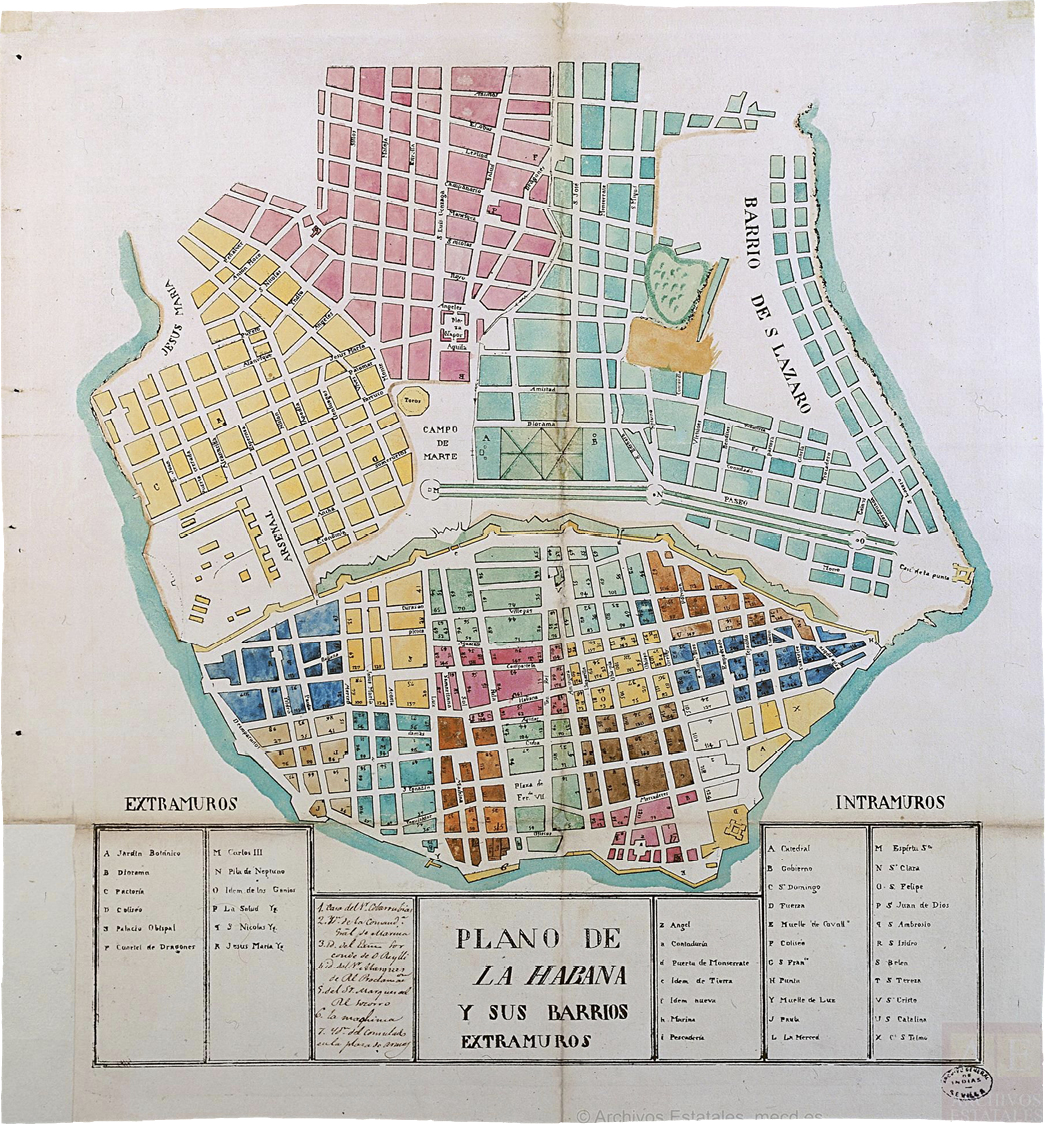 Figura 7. Plano de la Habana y sus barrios extramuros, 1829. Fuente: Oficina del Historiador, 2011.