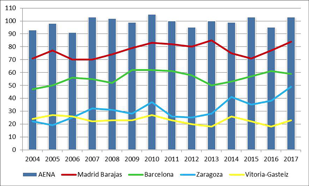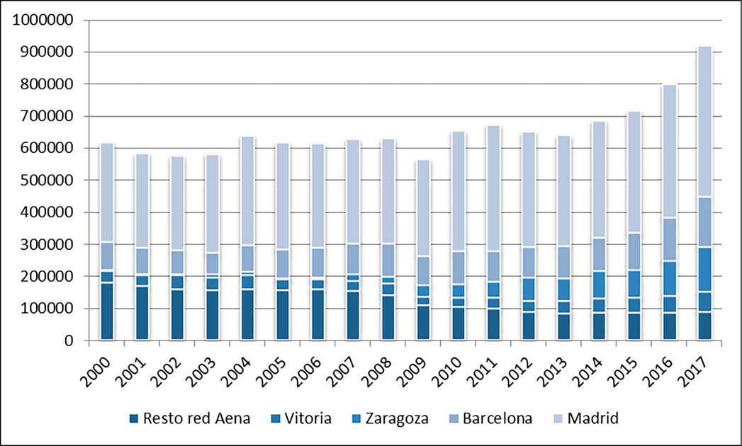 Aeropuertos Españoles y Navegación Aérea (2018). Recuperado de http://www.aena.es/csee/Satellite?pagename=Estadisticas/Home Último acceso: 10 de octubre de 2018.