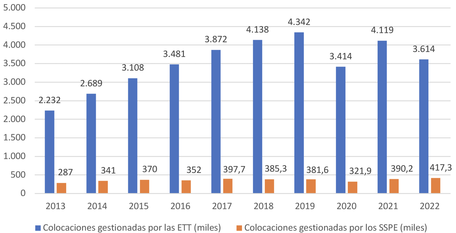 [9] Para un análisis más detallado, incluyendo los datos desglosados por CCAA, véase Alujas Ruiz, J. A., «Análisis de la intermediación laboral a nivel autonómico: Servicios públicos de empleo versus empresas de trabajo temporal», Servicio Público de Empleo Estatal, 2023, fecha de consulta 8 enero 2024, en https://sepe.es/HomeSepe/que-es-el-sepe/que-es-observatorio/Revista-cuadernos-del-mercado-de-trabajo/detalle-articulo.html?detail=/revista/Ajustes-y-desajustes-de-la-oferta-y-demanda-de-empleo/analisisdelaintermediacionlaboralanivelautonomicoserviciospublicosdeempleoversusempresasdetrabajotemporal.