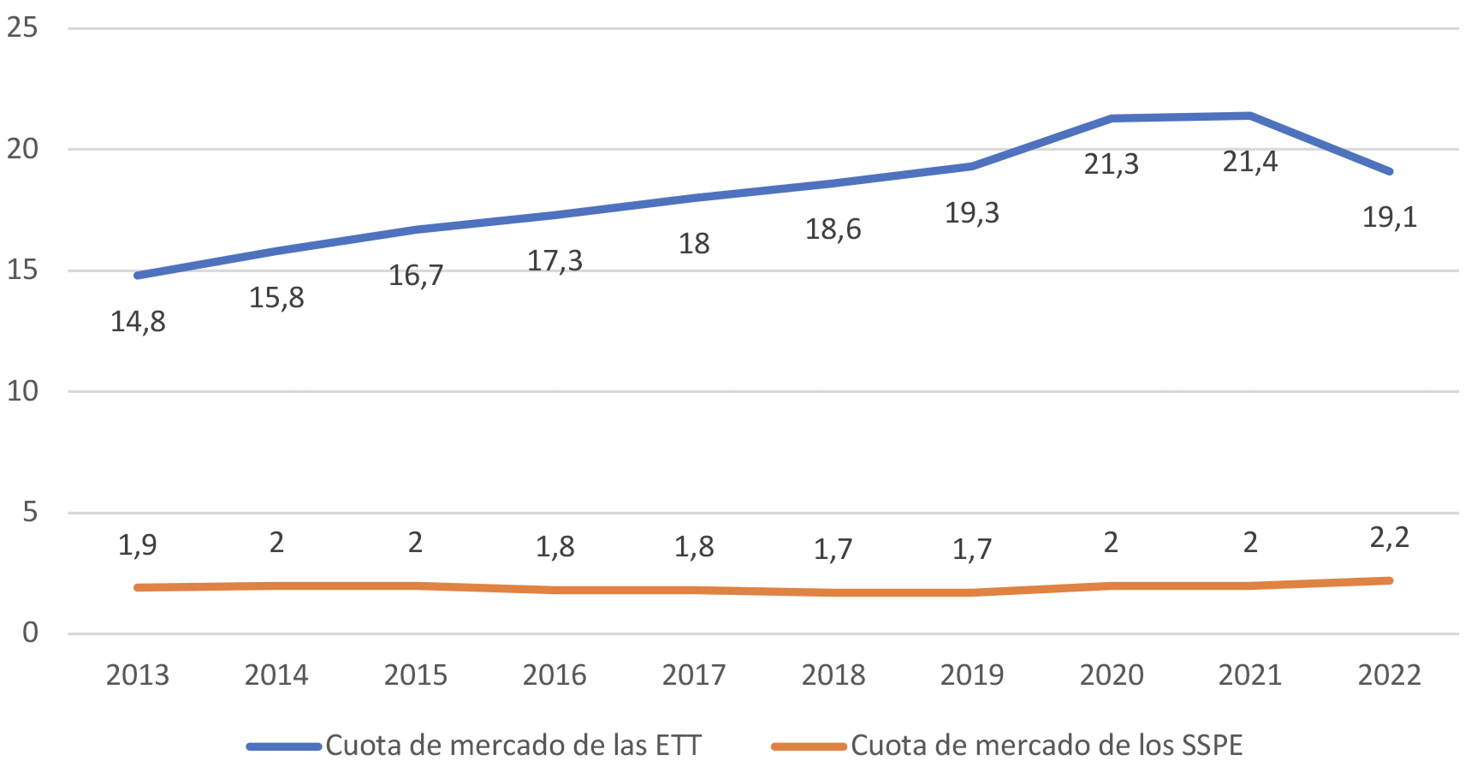 Fuente: elaboración propia a partir de Estadísticas de Empleo y de ETTs.
