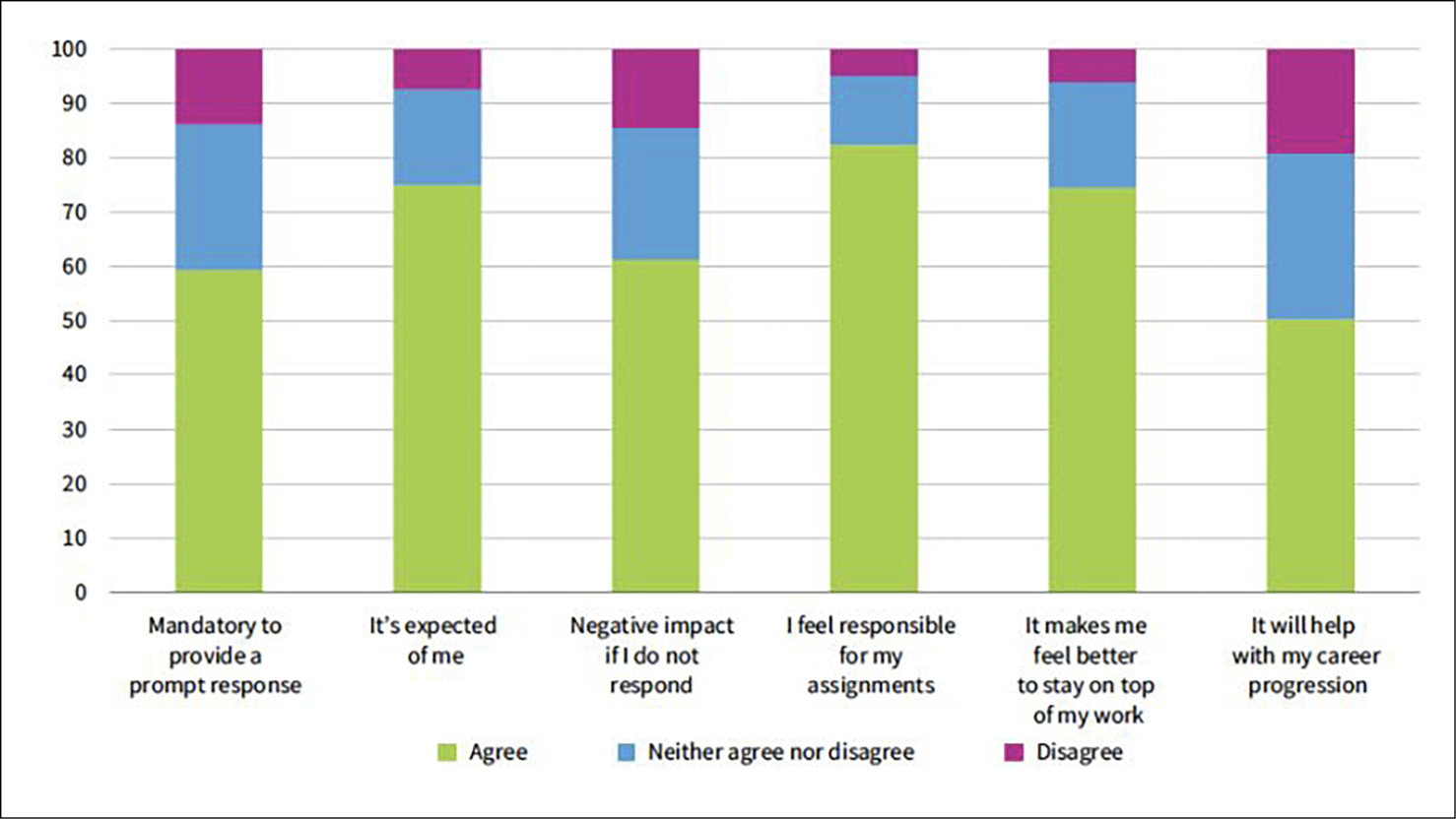 Motivos para responder a llamadas o mensajes fuera del horario laboral (%)