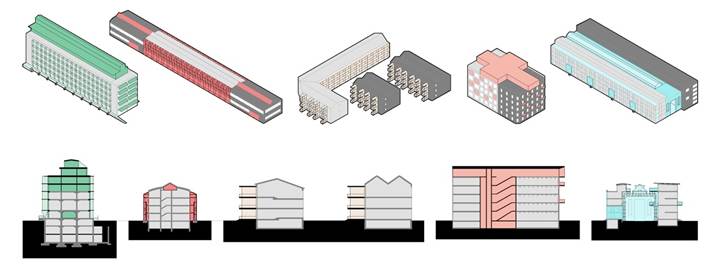 - Generar núcleos técnicos anexionados a las piezas industriales que concentren instalaciones, comunicaciones y posibles refuerzos estructurales.