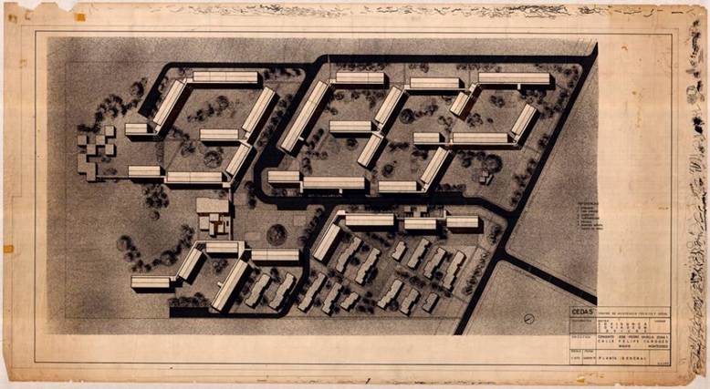 Fig. 3. Conjunto José Pedro Varela. Zona 1: Planta General (D.000384), Cedas, 1971. Fuente: DDI, IH, FADU- UdelaR.