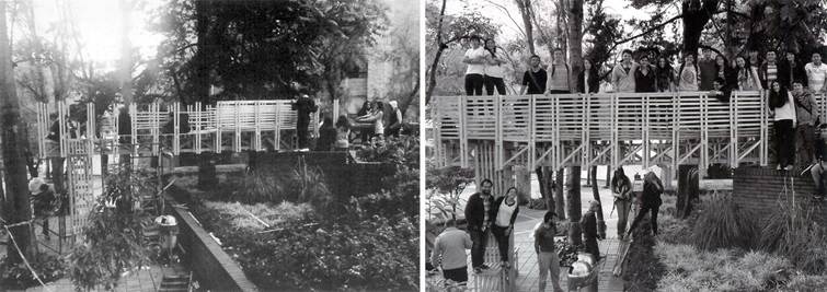 De la misma forma sobre el plástico se identificaron los vectores que simulaban el interés de la población en los espacios, según se iban indicando en él deseos, necesidades o requerimientos específicos expresadas en el dialogo sobre sus actividades cotidianas en el espacio; que podían ser negativos, cuando el espacio se marca por una actividad rechazada por la comunidad, como los lugares peligrosos con actividades ilegales; y positivos, cuando se advierten formas de apropiación deseables que ayudan en algún sentido al crecimiento comunitario. A partir de estos vectores, los estudiantes pudieron establecer hipótesis de reorganización, así como proponer dispositivos espaciales necesarios para desarrollar las propuestas que potenciarían los valores positivos y contrarrestarían los negativos. En síntesis, la performance entre el plano en el plástico, comunidad y estudiantes fue el medio para construir un diálogo sobre lo que podría pasar si se planteara determinado dispositivo espacial, para cierto uso, en cierto lugar.