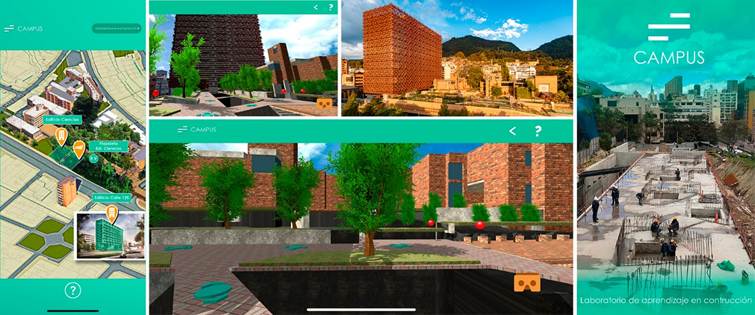 Desde la experiencia de la Pontificia Universidad Javeriana, un grupo de profesores investigadores de arquitectura desarrolló la aplicación “Campus Laboratorio de Aprendizaje en Construcción” (CAMPUS Javeriana) (figura 4) en donde los estudiantes pueden aprender construcción de manera interactiva e inmersiva dentro de su propia universidad, donde se explican las características constructivas de los edificios más representativos. CAMPUS Javeriana es un software móvil diseñado específicamente para transformar la enseñanza y el aprendizaje en arquitectura y construcción a través de la integración de tecnologías digitales avanzadas, en estudiantes de los programas de Ingeniería Civil y Arquitectura. La aplicación funciona como una plataforma interactiva y multimodal que permite a los estudiantes acceder a un repositorio creado con recursos construidos sobre los edificios del campus, en los cuales encuentran videos y fotografías 360° de procesos constructivos reales, planimetrías técnicas, imágenes, infografías, modelos BIM (Building Information Modeling) y experiencias de realidad virtual y aumentada, todo desde sus dispositivos móviles (Valbuena-Bermúdez et al. 2024). Esta información permite la evaluación de problemas técnicos como base y para la posterior exploración de propuestas que mejoren su rendimiento. La aplicación móvil se complementó con el desarrollo de la página web “Campus 2.0” (figuras 5 y 6), versión mejorada basada en la retroalimentación y resultados obtenidos de CAMPUS Javeriana, incorporando nuevos contenidos, mejoras en la navegación y experiencia de usuario, mayor cantidad y diversidad de recursos multimedia que robustecen las aproximaciones pedagógicas para la docencia. El objetivo principal de CAMPUS Javeriana es potenciar el aprendizaje experiencial y performativo permitiendo que los estudiantes no solo reciban información, sino que vivan y experimenten los procesos constructivos de manera inmersiva y autónoma, buscando superar los métodos tradicionales, que suelen centrarse en la transferencia pasiva de conocimientos mediante clases teóricas y manuales. La app pone el énfasis en la intra-acción, la observación directa y la reflexión crítica sobre la práctica.
