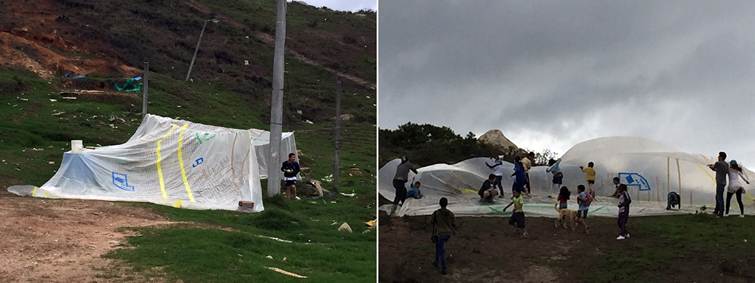 Fig. 8 El plástico utilizado como medio recreativo y de protección. Fuente: Arquitecturas Insurgentes, 2018.