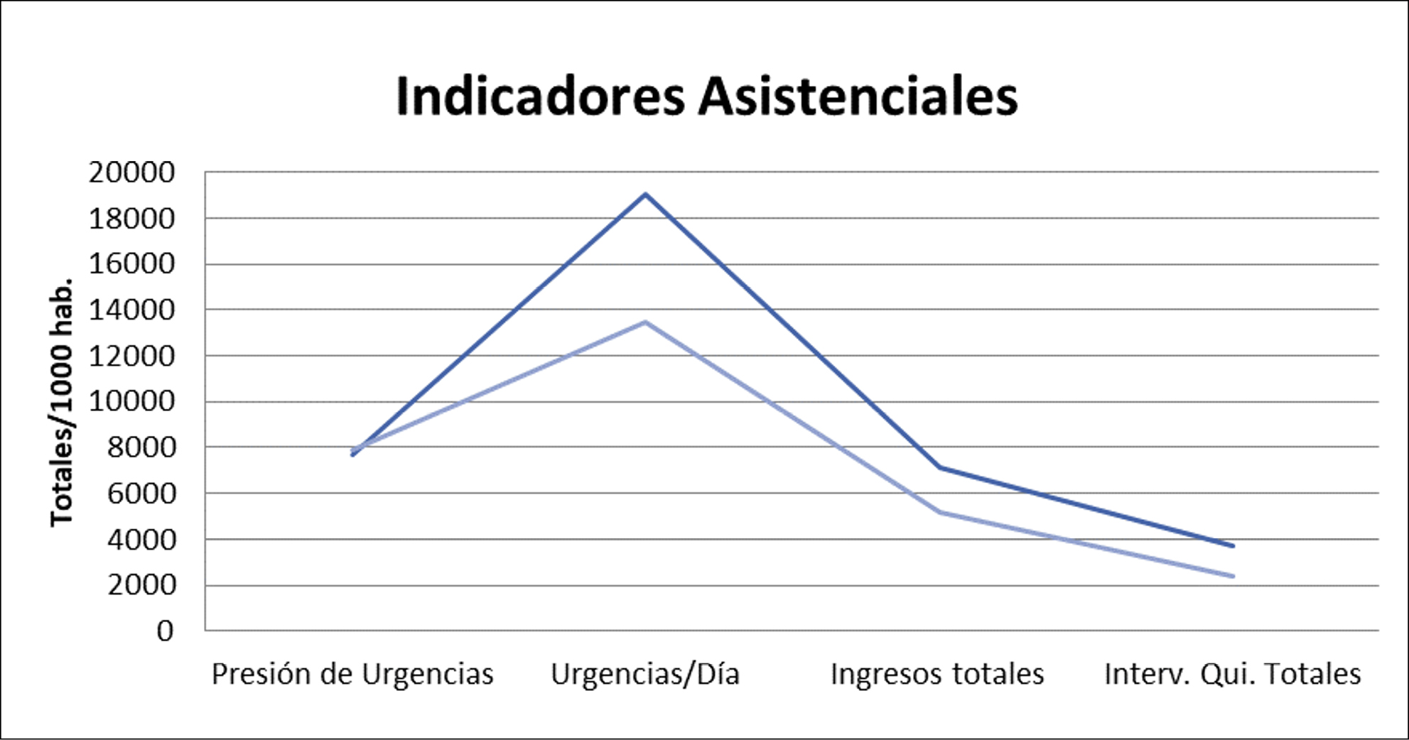 Adicionalmente, los Indicadores Asistenciales expuestos en el gráfico 2 reflejan una diferencia considerable a la baja muy acentuada en la hospitalización.