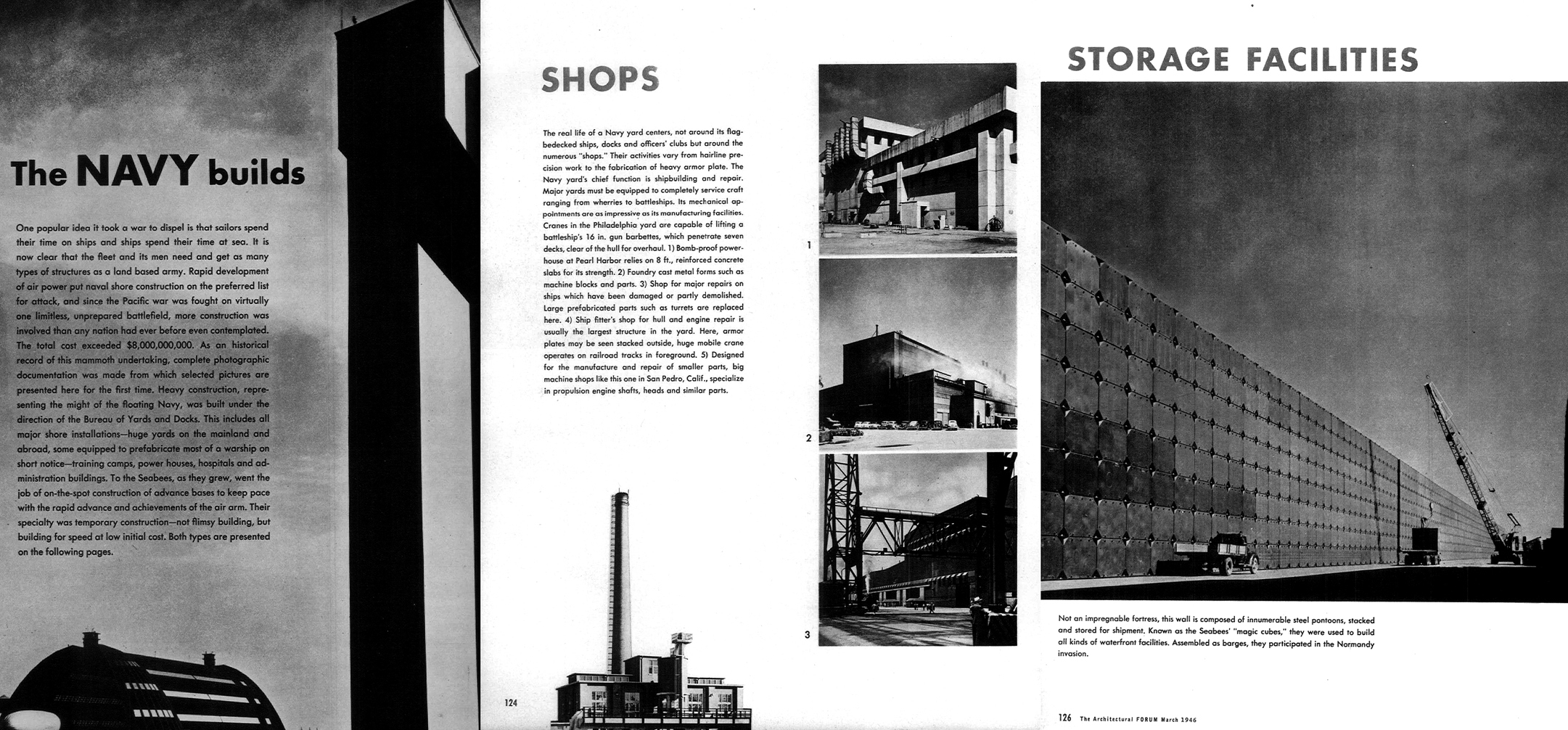 [36] The Navy builds. En: The Architectural Forum [en línea]. Nueva York: Time Inc., marzo 1946, vol. 84, n.º 3, pp. 121-135 [consulta: 30-09-2024]. Disponible en: https://usmodernist.org/AF/AF-1946-03.pdf.