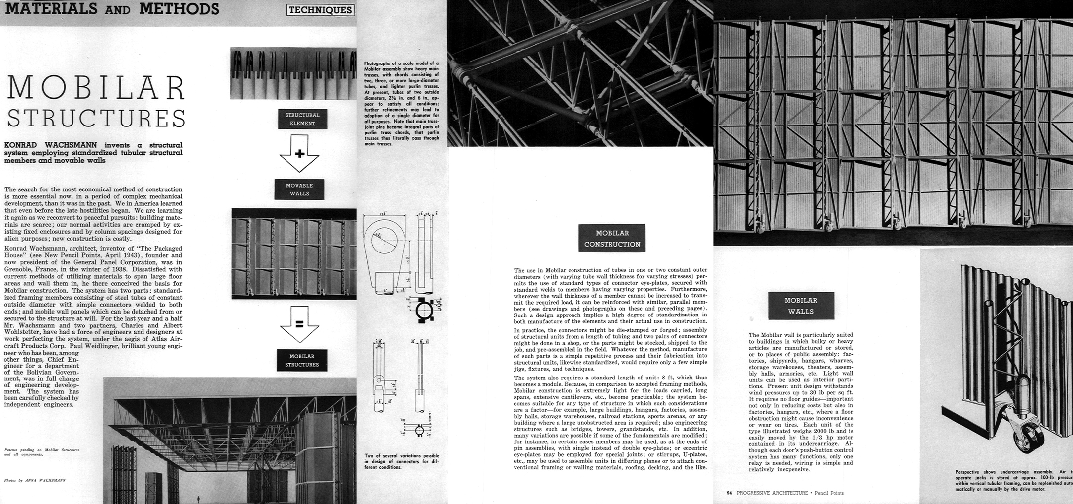 Wachsmann, Konrad. Mobilar structures. En: Progressive Architecture [en línea]. Nueva York: Reinhold Pub. Corp., marzo 1946, vol. 27, n.º 3, pp. 87-99 [consulta: 30-09-2024]. Disponible en: https://usmodernist.org/PA/PA-1946-03.pdf.