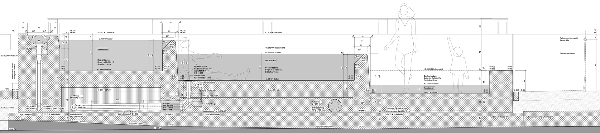 12. Sección de piscina caliente, piscina templada y piscina poco profunda, orilla de Baden, 2021.
