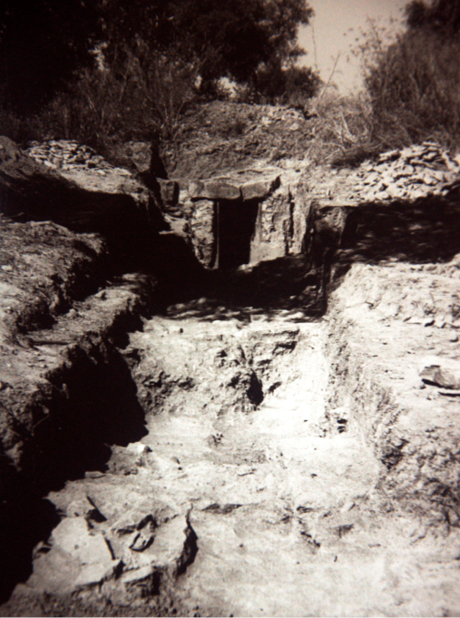 Figura 18. Estructura de taponamiento y clausura definitiva del monumento, imagen de las excavaciones de 1963. Fondo Collantes, caja nº 5, Dpto. de Prehistoria y Arqueología de la Universidad de Sevilla.