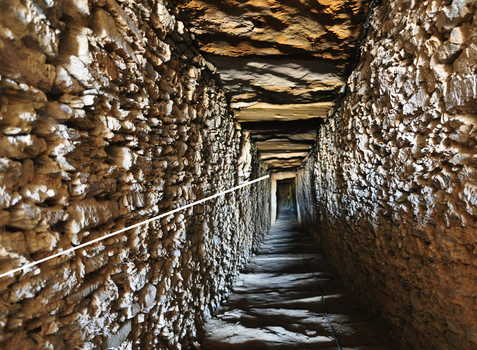 Cerramiento del inicio del corredor con losas verticales. Ortostatos de cierre del monumento. |