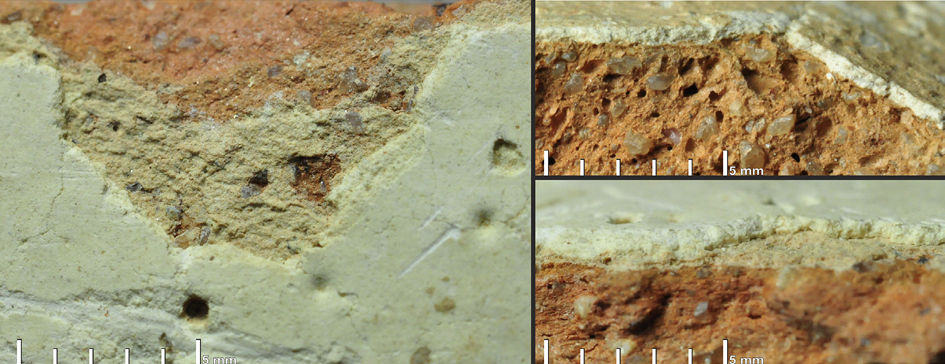Figura 2. Pormenor sobre los engobes espesos, de color blanquecino.