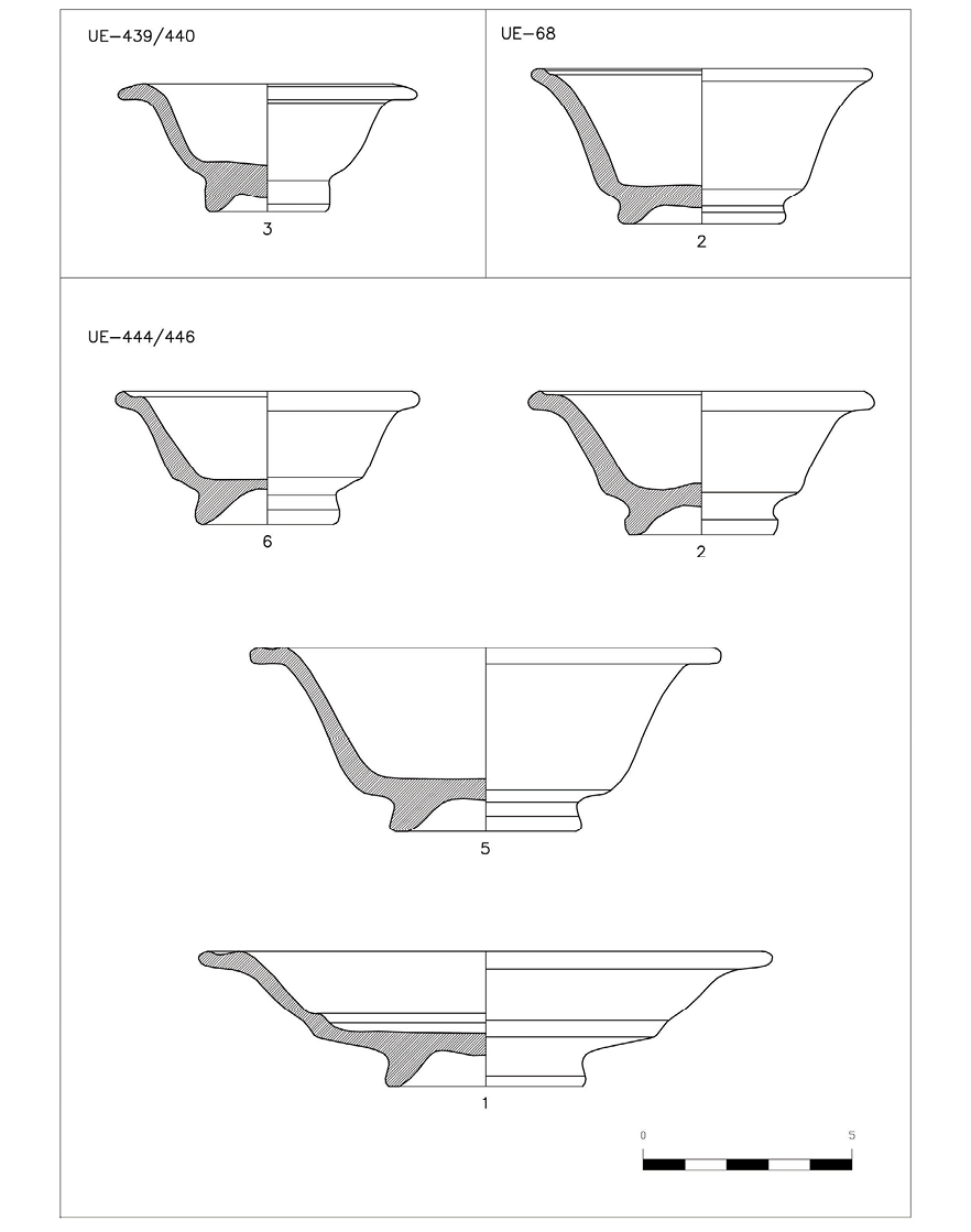 444-446.6 Copa: Asimilable a la forma Ic de Martínez y al Tipo 12 de Amores y Keay; vinculada a la forma itálica Consp. 2.3. (Lám. III).