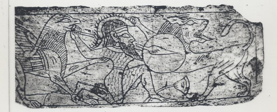 Figura 1. Marfil de Bencarrón (Carmona, Sevilla). Representación de la figura de un león, grifo y un guerrero.
