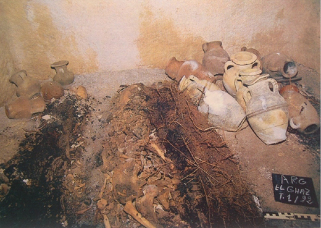 Figura 4. Interior del hipogeo 1/92 de Arg el Ghazzouani. Contiene inhumaciones en sarcófago de madera y cremaciones ubicadas en urnas. Tumba fechada en el siglo IV a.C. (Fantar, 1998, 90)