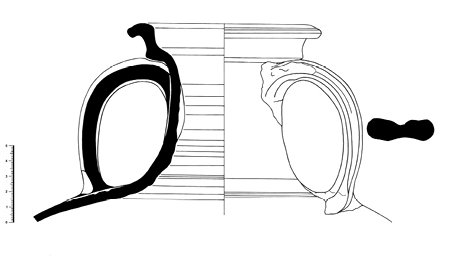 Se atentarmos na análise das ânforas de fundo plano apresentadas por Hélène Bernard (2008: 462, fig. 2) constatamos que, ao lado de um exemplar do tipo Dressel 28, figuram três outros exemplares integráveis nas ânforas que designamos tipo urceus (fig. 2).