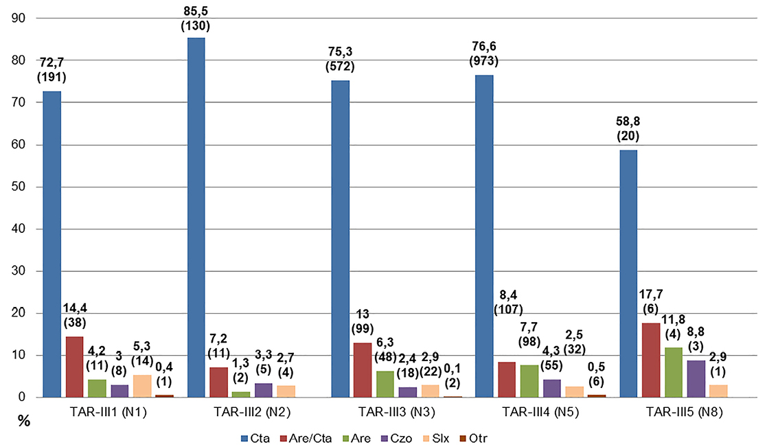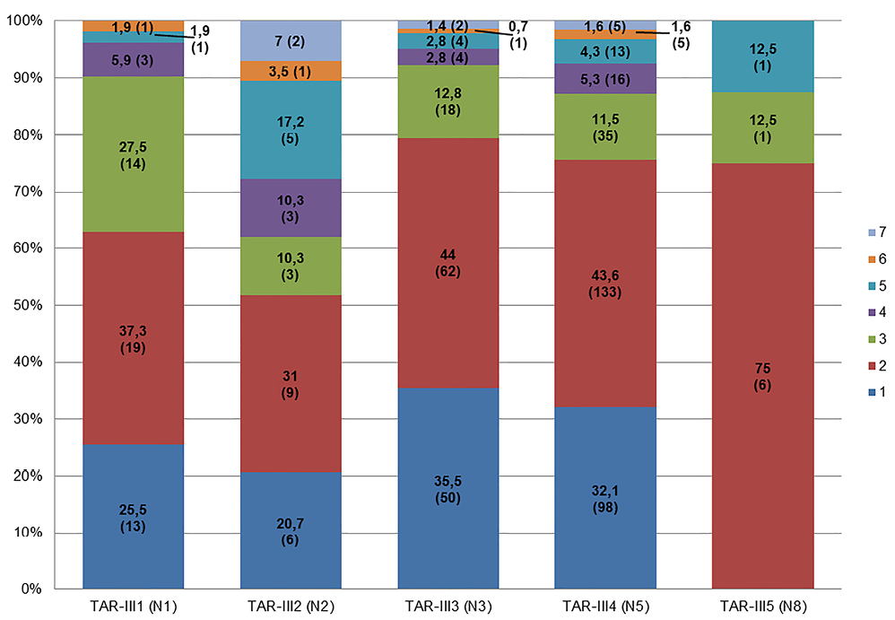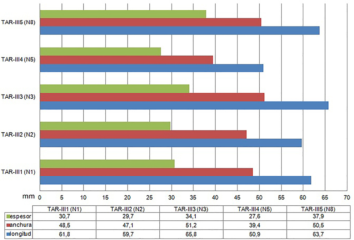 Los conjuntos líticos han sido identificados con las tres primeras letras del yacimiento (TAR), seguidas de un número romano, en este caso III, puesto que en el sitio genérico se localizan otros dos yacimientos: Tarazona I y Tarazona II (Caro et al., 2003). Finalmente, se le añade el número del nivel estratigráfico donde se localiza la industria.