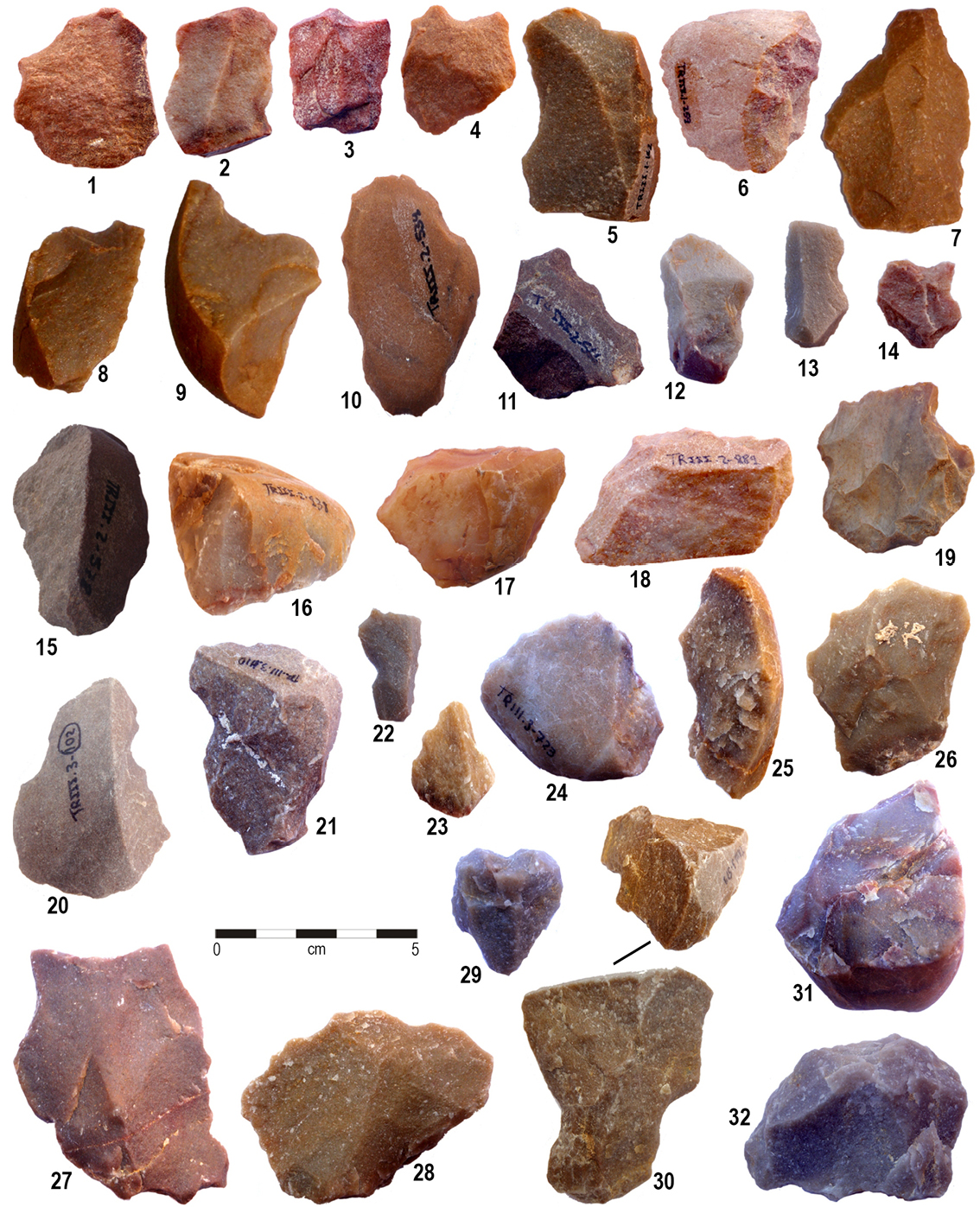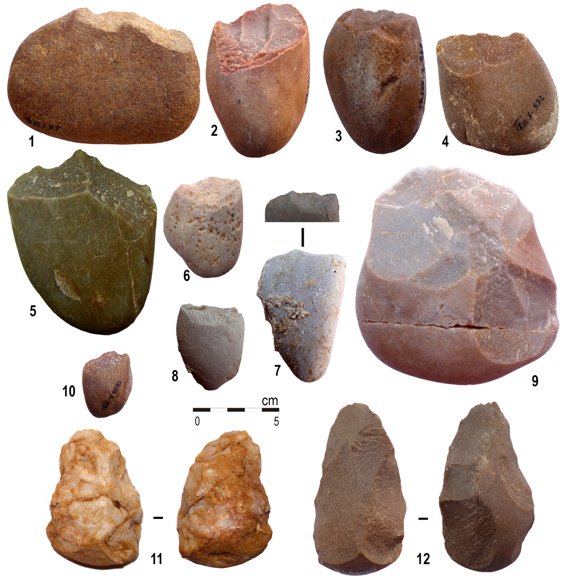 Formando parte de esta diversidad habría que situar aquellos conjuntos de tecnocomplejos que comparten características comunes, cuya interpretación cultural resulta problemática. Recordemos el clásico “Achelense meridional” de Bordes (Bordes, 1971), reinterpretado posteriormente como Paleolítico Medio temprano (Turq et al., 2010). Igualmente, en los depósitos aluviales de las terrazas se han venido identificando conjuntos situados cronoestratigráficamente en el límite Pleistoceno Medio/Pleistoceno Superior, como un genérico Paleolítico Inferior de carácter transicional (Achelense Final/Paleolítico Medio) con macroutillaje residual (Cano et al., 1997).