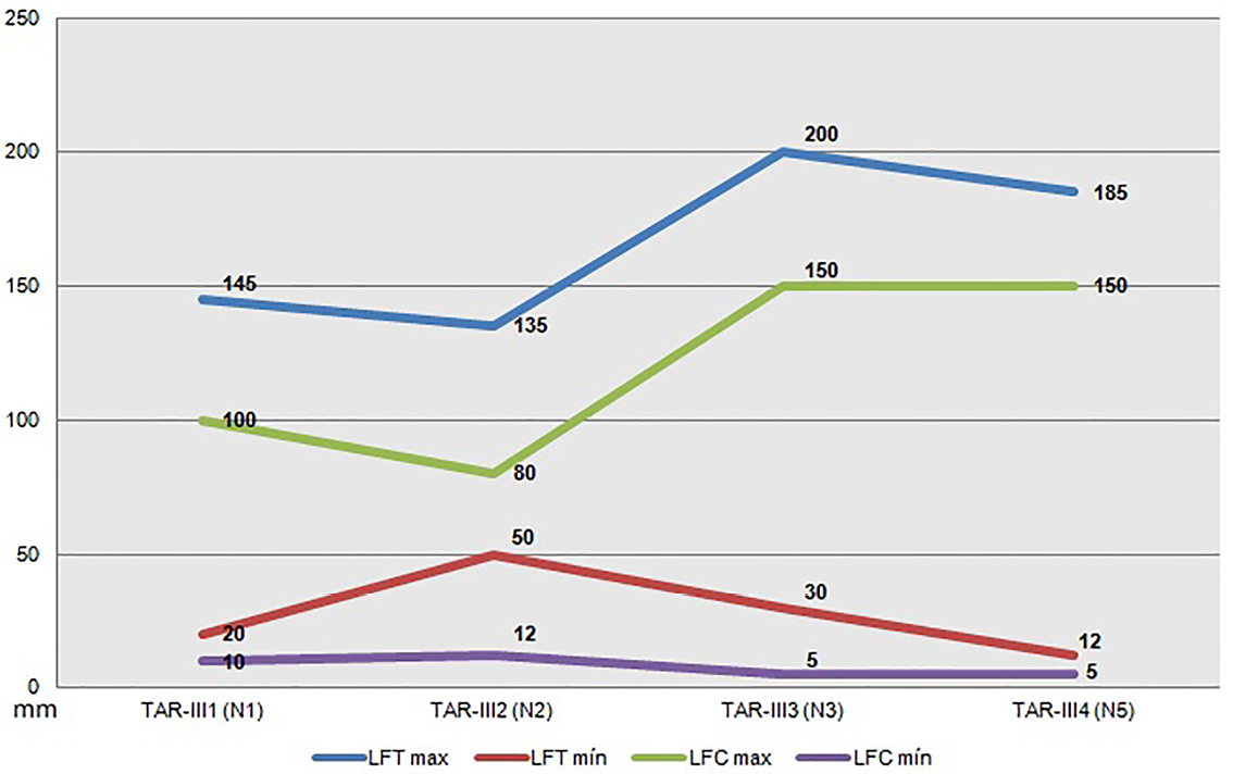 Se realiza una lectura tecno-morfológica de los conjuntos y comportamiento de la talla con lecturas diacríticas (Baena, 1998; Baena y Cuartero, 2006); identificación de técnicas de talla (Pelegrin, 2013), de esquemas operativos (variabilidad y complejidad de las cadenas operativas) y estudio del utillaje retocado (Cresswell, 1982; Lemonier, 1976; Audouze y Karlin, 2017; Böeda, 1988; 1991; 1993; 2001; Böeda et al., 1990; Pelegrín et al., 1988; Bourguinon et al., 2004; Geribás et al., 2010; Inizan et al., 1995; Soressi y Geneste, 2011; Caro, 2006; Caro et al. 2011; 2013a; 2013b). En el caso de estos últimos elementos sometidos a procesos de transformación, se introduce también la valoración de los tipos de retoque según las distintas categorías y pautas (dirección, ángulo, extensión, etc.). Igualmente, en estas piezas se han realizado mediciones complementarias de los filos, que ponen en relación el valor de la longitud total de los mismos (LFT) y la longitud del filo configurado (LFC) (Méndez-Quintas, 2017), es decir, aquella porción del filo que ha sido modificado por algún tipo de retoque. La relación entre ambas ofrecerá resultados cuyo valor mínimo será de 1, en aquellos casos en los que todo el filo haya sido retocado, y que irá subiendo de forma proporcional, de tal manera que cuanto menos retocado esté, mayor será el valor. Hemos estimado 5 grados: Grado1) valores de entre 1 y 1.3 que muestran una configuración total o casi; Grado2) valores entre 1.4 y 1.7, también con una transformación del borde muy elevada por encima del 80%; Grado3) entre 1.8 y 2.5 que denotaría una configuración de tipo medio; Grado4) entre 2.6 y 3.5 que supone una configuración media/baja en torno al 25%; y Grado5) valores >3.5 que muestran una débil configuración por debajo del 20%.