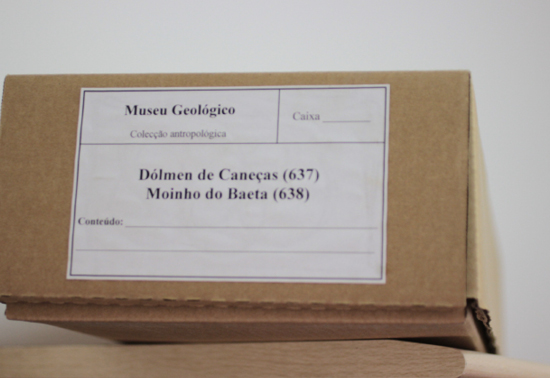 The human remains recovered by Carlos Ribeiro in 1875 are housed in the Museu Geológico (Figure 5a). The bone remains are labelled as Moinho do Baeta (code MG 638) and the dental remains as Dolmen de Caneças (code MG 637). Fragments of cranium, clavicle, scapula, humerus, radius, ulna, femur, tibia, fibula and calcaneus are represented in this assemblage. Only 3 of the 65 bone fragments belong to non-adult individuals. Three fragments (fragments of left and right femur; left tibia), still have the original Carlos Ribeiro label with information about their provenience: “22/2/1875, 300m S70’E do M’ do Baeta, Caneças” (22/2/1875, 300 metres south, 70 metres east of the Baeta Mound, Caneças – authors’ translation) (Figure 5b).