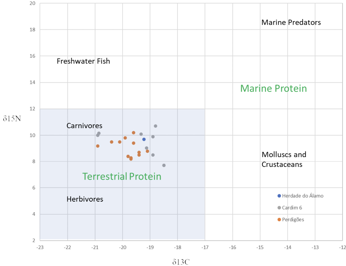 Nevertheless, the empirical bases of this trend still need a better characterization, as well preserved, adequately excavated, and dated burials, with bioanthropological and isotopic studies of the human remains, are still scarce. In this context, the recent excavation of an individual pit grave (Grave 1) in the Herdade do Álamo (Beja) with a votive assemblage typical of “Ferradeira” and its multidisciplinary approach (archaeological, bioanthropological, isotopic and archaeometallurgical studies) is an important addition to the knowledge and problematization of a still relatively obscure period of transition in the Iberian Southwest.
