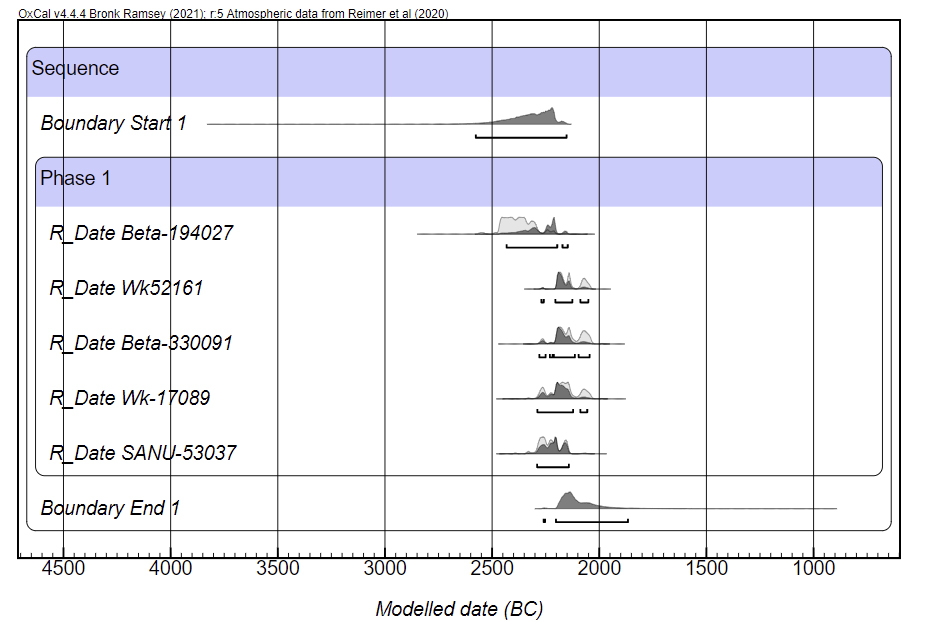 Figure 8. Bayesian model for the available radiocarbon dates of “Ferradeira” funerary contexts (dates were modelled as one phase). ^