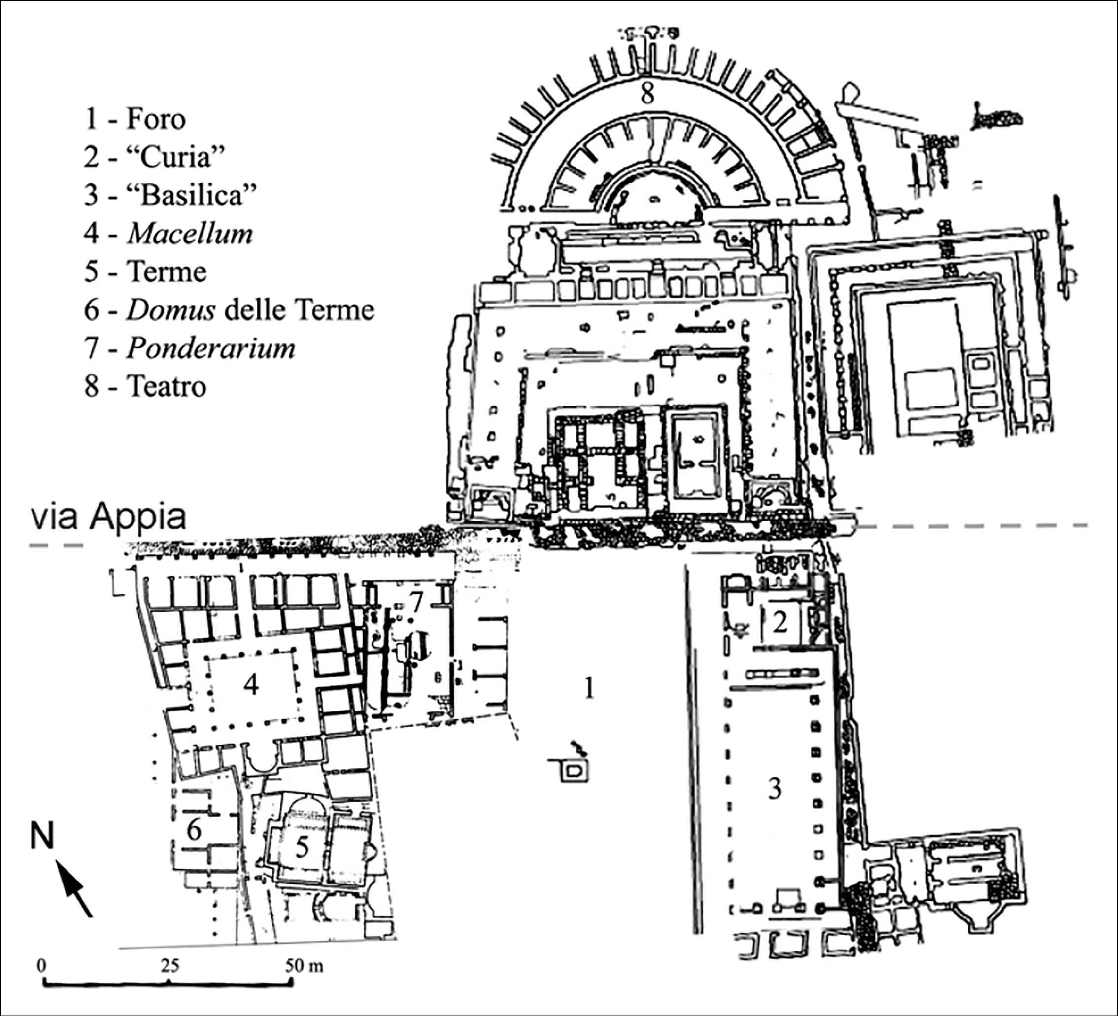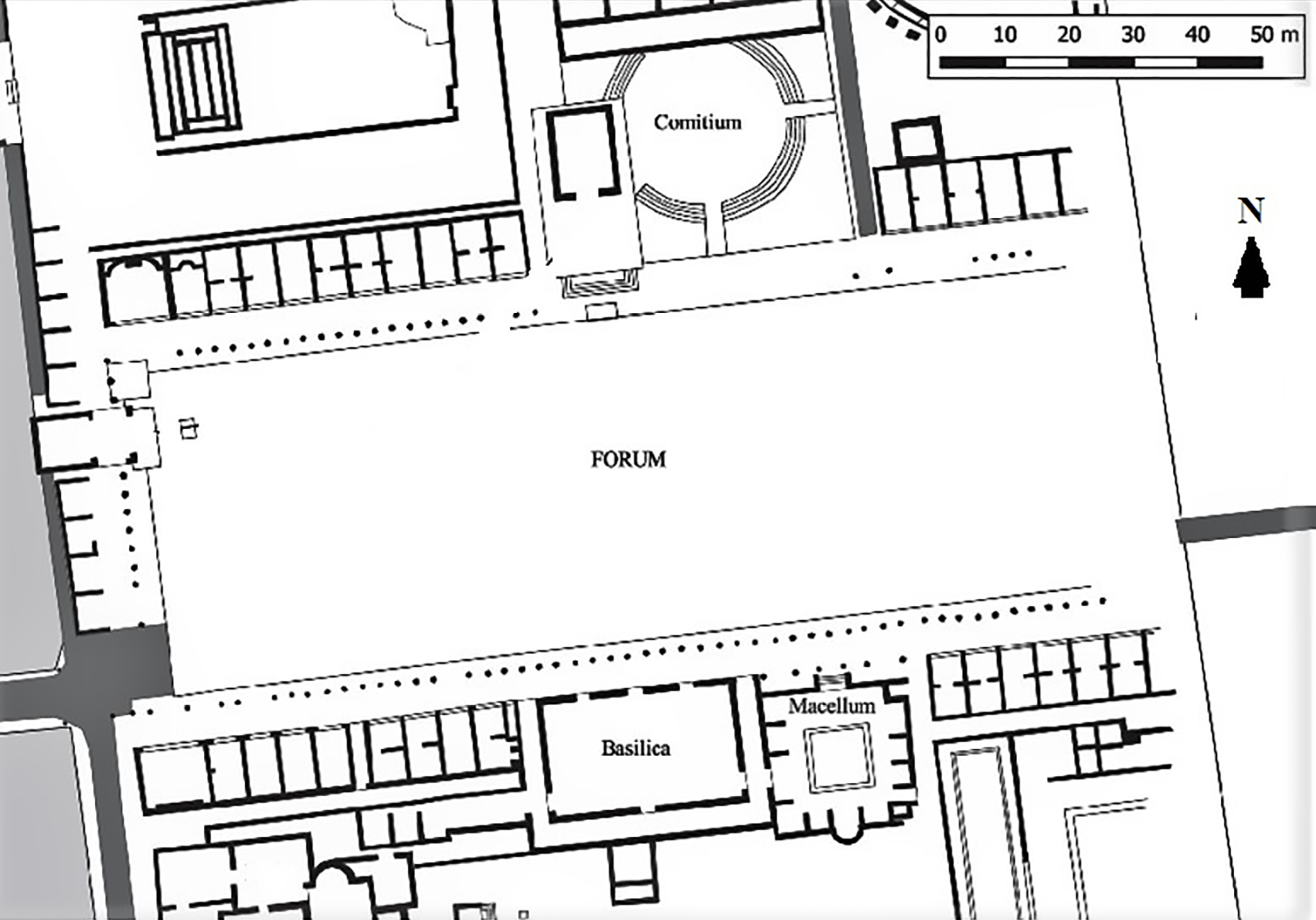 Figura 4. Paestum. Plano del foro (Flohr, 2021, fig. 10.4) ^