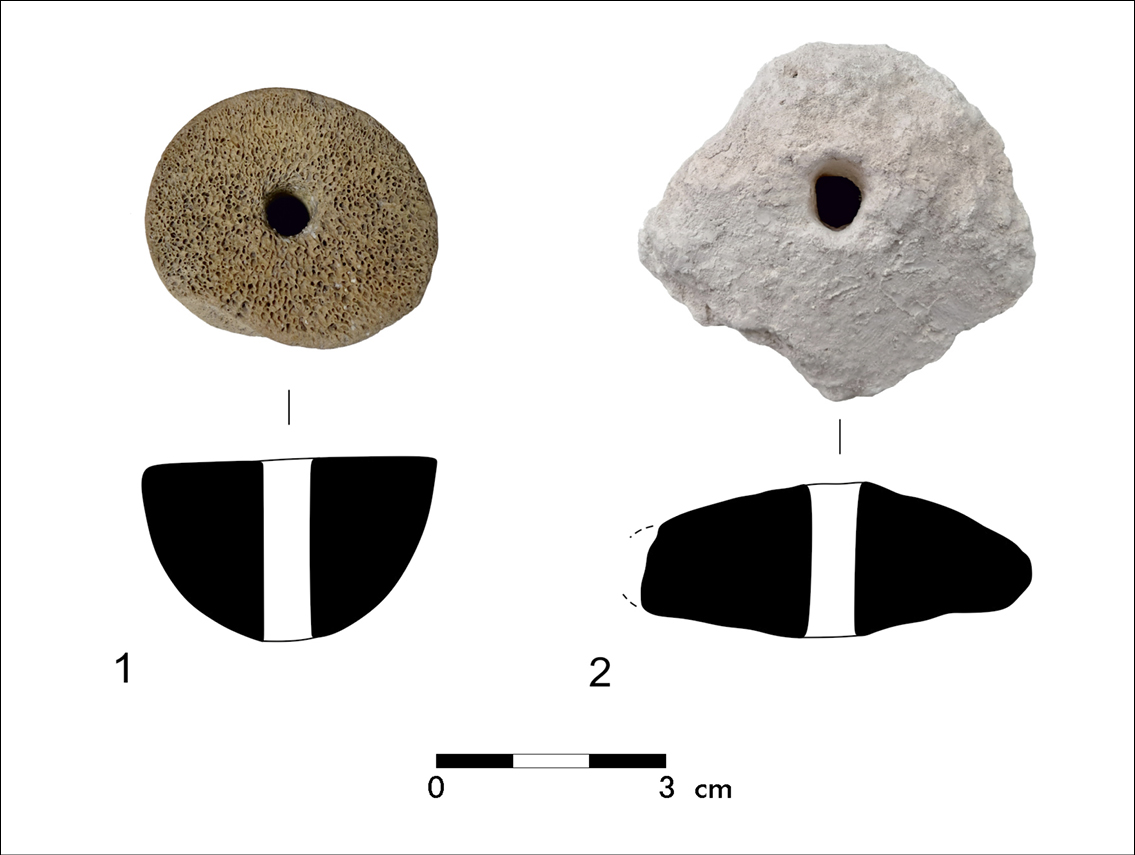 Figura 7. Fusayolas de hueso y de piedra de Cabezo Redondo.