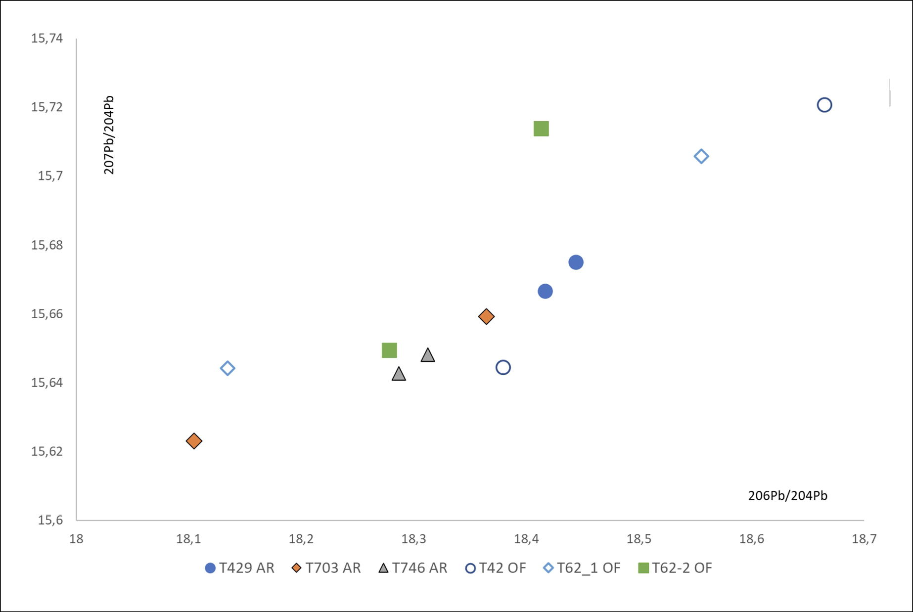 Figure 5. Lead Isotope ratios of objects analysed. ^
