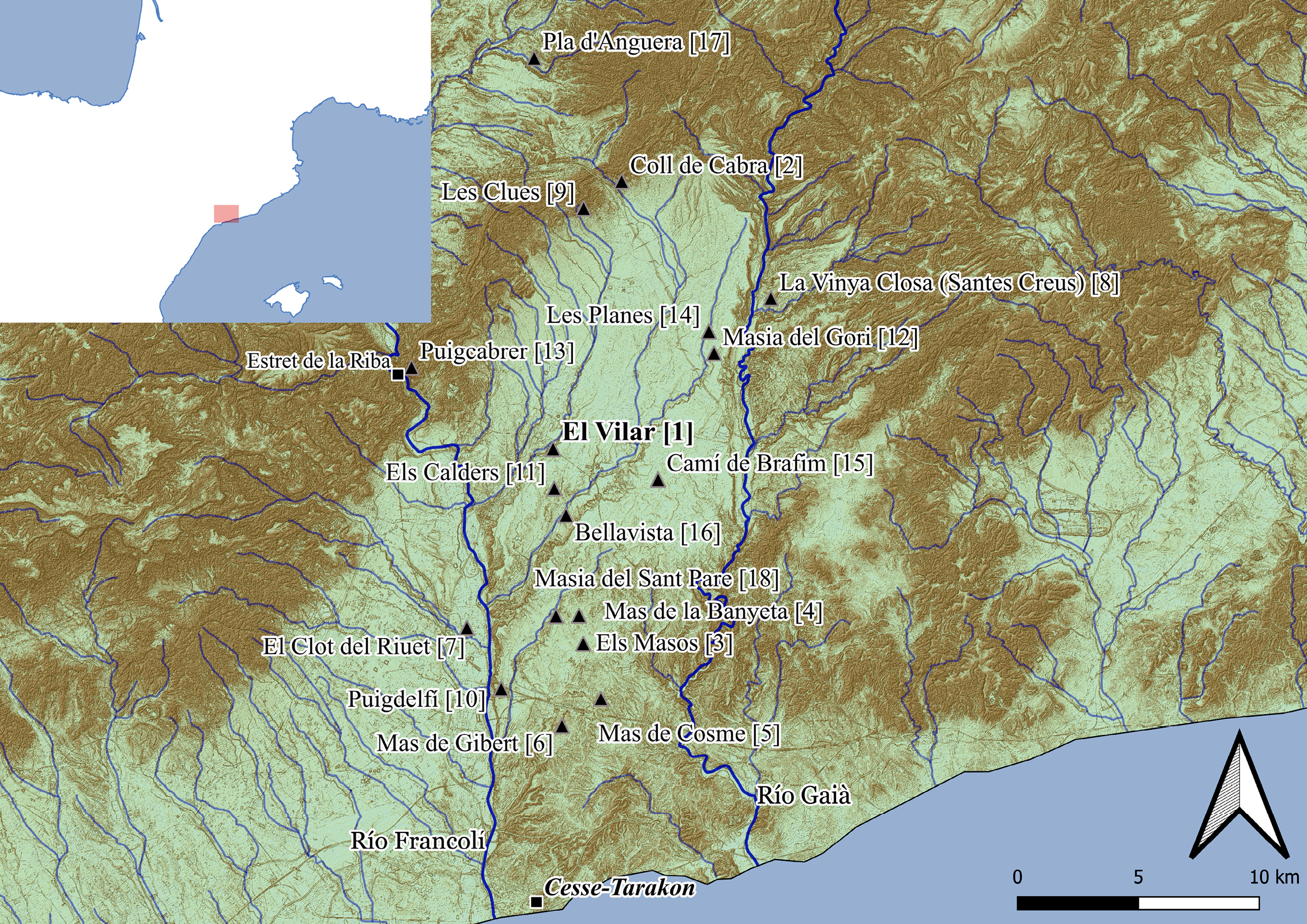 La zona norte del Camp de Tarragona es un nudo de comunicación entre el valle del Segre y la costa, que únicamente puede efectuarse por dos pasos obligados que flanquean la Sierra de Miramar, una estribación de la Cordillera Prelitoral: por el oeste el Estret de la Riba, y por el este el Coll de Cabra. Esta configuración orográfica determina que los ríos Francolí y Gaià, o los diversos barrancos o torrentes, tengan una clara orientación norte-sur, entre la Cordillera Prelitoral y la costa. Asimismo, muchas de las comunicaciones actuales (AP2, C14, TP-2311, etc.) presentan esta misma orientación y aprovechan estos dos pasos. Los dos núcleos principales de población en el siglo III a.C., El Vilar y Cesse-Tarakon, están separados por una distancia de 20 km en sentido norte-sur, siguiendo la cuenca del río Francolí. El primero controlaba el territorio interior y el acceso de los pasos de la Sierra de Miramar, mientras que el segundo dominaba la vía costera y el acceso marítimo (fig. 2).