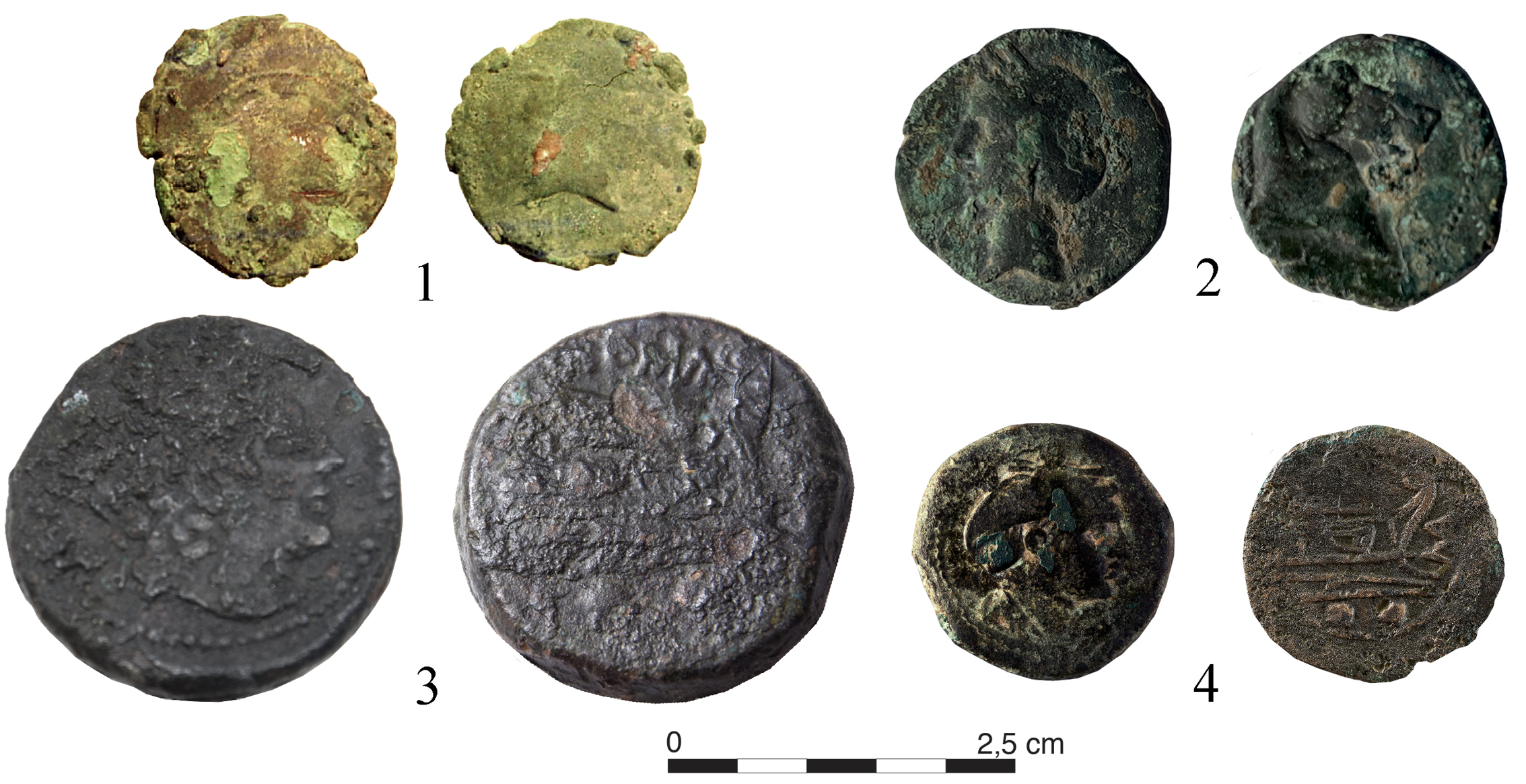Antes de analizar las monedas identificadas en la zona y de intentar su contextualización histórica, tenemos que recordar que se trata de monedas sin contexto arqueológico, por lo que las hipótesis planteadas son preliminares y tendrán que ser comprobadas en el futuro con una documentación más fiable. Ahora bien, hemos conseguido ubicar la inmensa mayoría de los hallazgos, y en ocasiones los hemos podido certificar mediante prospecciones arqueológicas.
